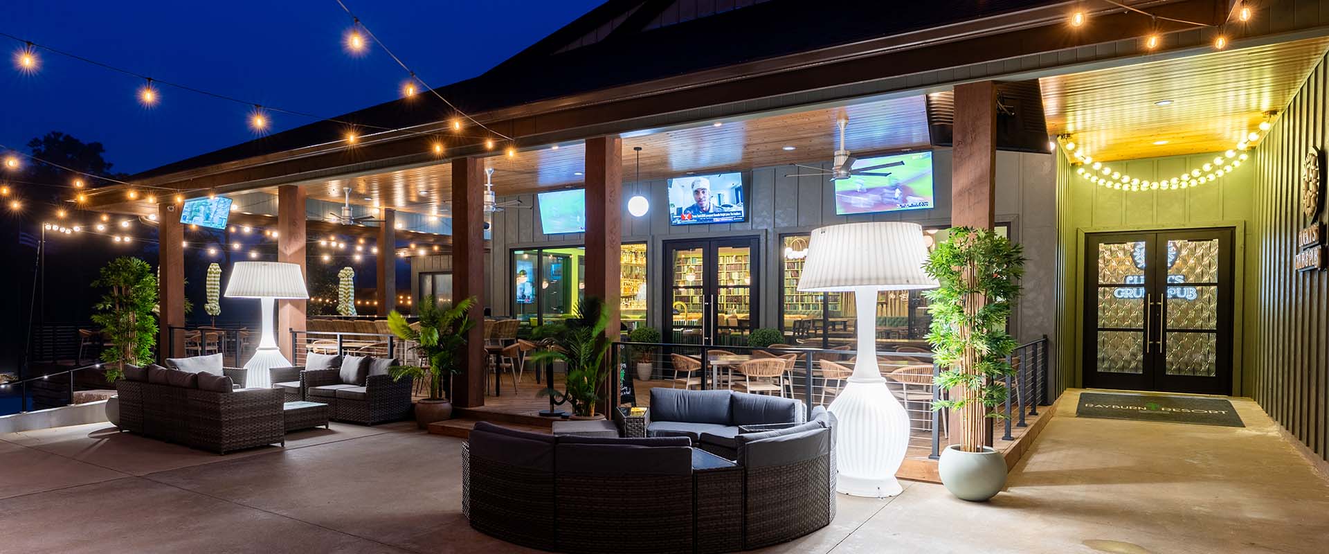 Take in stunning views from our spacious outdoor deck overlooking the golf course. It’s the perfect setting to enjoy a meal, catch the big game, or relax with friends and family.